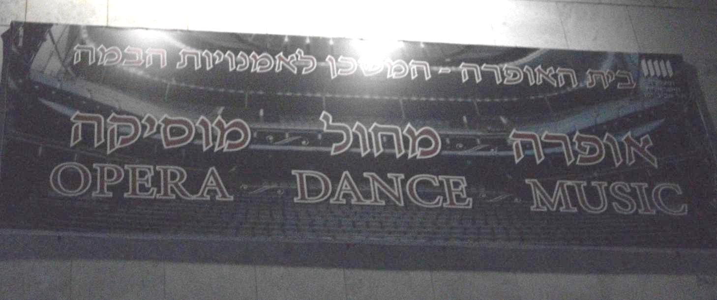אתמול בערב עברתי ליד בית האופרה במשכן לאמנויות הבמה, שעל הקיר שלו היה תלוי השלט הבא (ניתן ללחוץ על התמונה להגדלה):