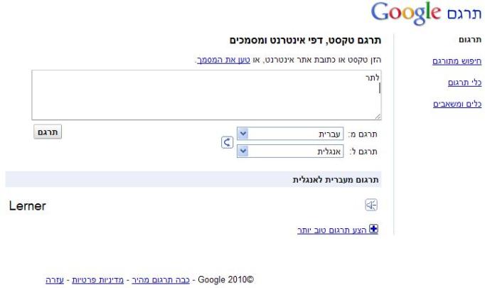 כשמקלידים את רצף האותיות "לתר", גוגל טרנסלייט חושב שמדובר ב"לרנר":