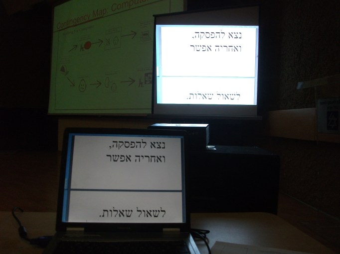 באופן אישי, אני עוסקת גם בנישה שנמצאת איפהשהו ביניהם, תרגום סימולטני בהקלדה של הרצאות, כך שאני מקלידה בזמן אמת את תרגום דברי המרצה, והוא מוקרן על מסך כמו כתוביות.